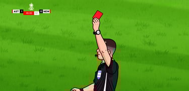 Aston Villa loses the ball, Newcastle starts a fast counterattack. After a long ball, Aston Villa's goalkeeper Bizot did an uncontrolled tackle and got a red card.
